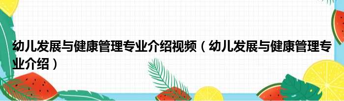 幼儿发展与健康管理专业介绍视频(幼儿发展与健康管理专业介绍)