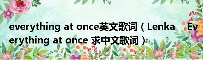 大家好,小东方来为大家解答以上的问题。everything at once英文歌词,Lenka Everything at once 求中文歌词这个很多人还不知道,现在让我们一起来看看吧!