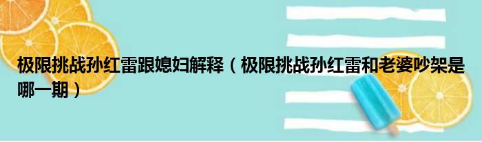 极限挑战孙红雷跟媳妇解释(极限挑战孙红雷和老婆吵架是哪一期)