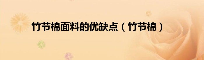 大家好,小东方来为大家解答以上的问题。竹节棉面料的优缺点,竹节棉这个很多人还不知道,现在让我们一起来看看吧!