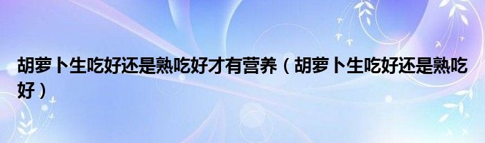 胡萝卜生吃好还是熟吃好才有营养(胡萝卜生吃好还是熟吃好)