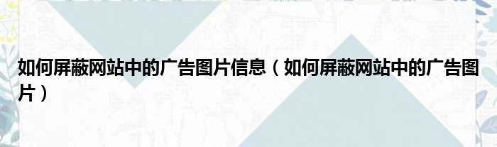 如何屏蔽网站中的广告图片信息(如何屏蔽网站中的广告图片)