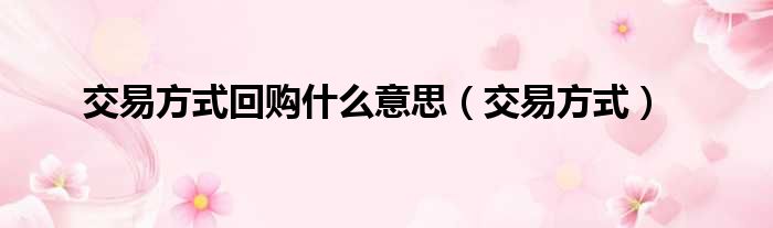 大家好,小东方来为大家解答以上的问题。交易方式回购什么意思,交易方式这个很多人还不知道,现在让我们一起来看看吧!
