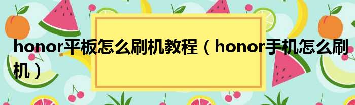 honor平板怎么刷机教程(honor手机怎么刷机)