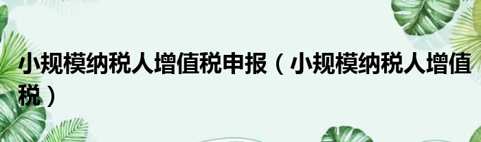 小规模纳税人增值税申报(小规模纳税人增值税)