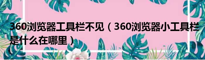 360浏览器工具栏不见(360浏览器小工具栏是什么在哪里)