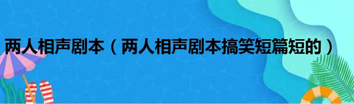 大家好,小东方来为大家解答以上的问题。两人相声剧本,两人相声剧本搞笑短篇短的这个很多人还不知道,现在让我们一起来看看吧!