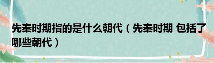 先秦时期指的是什么朝代(先秦时期 包括了哪些朝代)