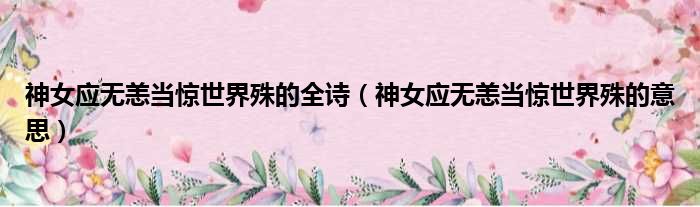 导读 大家好,小东方来为大家解答以上的问题。神女应无恙当惊世界殊的全诗,神女应无恙当惊世界殊的意思这个很多人还不知道,现在让我们一起来看看
