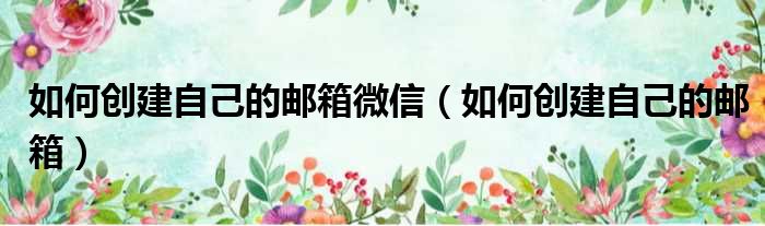 如何创建自己的邮箱微信(如何创建自己的邮箱)