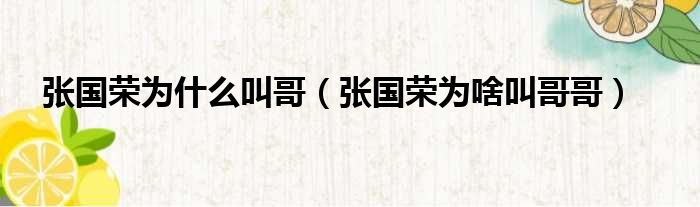 张国荣为什么叫哥(张国荣为啥叫哥哥)