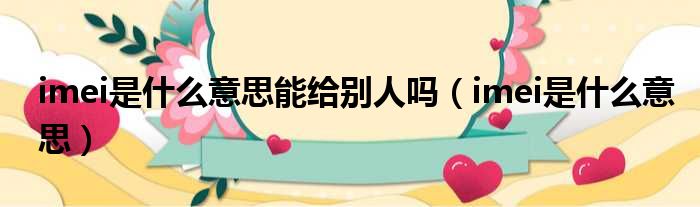 导读 大家好,小东方来为大家解答以上的问题。imei是什么意思能给别人吗,imei是什么意思这个很多人还不知道,现在让我们一起来看看吧!1、IMEI是