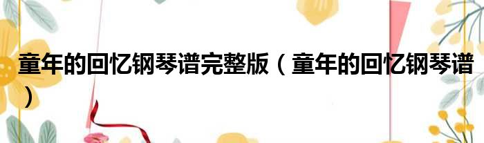 童年的回忆钢琴谱完整版(童年的回忆钢琴谱)