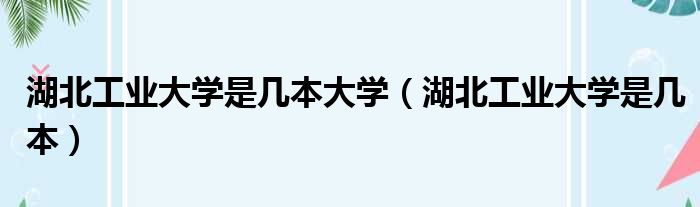 湖北工业大学是几本大学(湖北工业大学是几本)