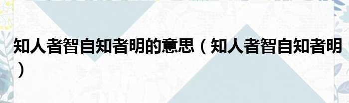 导读 大家好,小东方来为大家解答以上的问题。知人者智自知者明的意思,知人者智自知者明这个很多人还不知道,现在让我们一起来看看吧!1、知人者