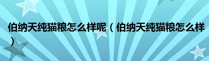 伯纳天纯猫粮怎么样呢(伯纳天纯猫粮怎么样)