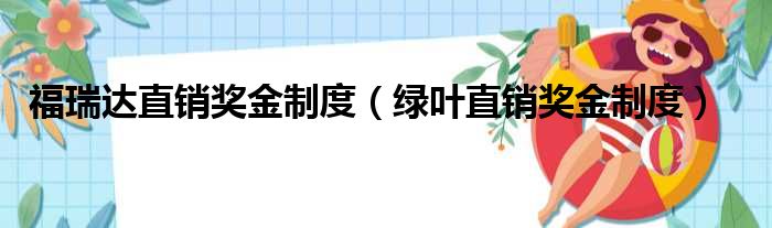 福瑞达直销奖金制度(绿叶直销奖金制度)