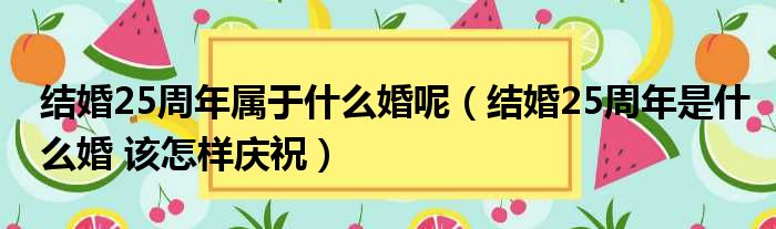 结婚25周年属于什么婚呢(结婚25周年是什么婚 该怎样庆祝)
