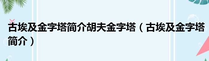 古埃及金字塔简介胡夫金字塔(古埃及金字塔简介)