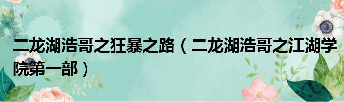 导读 大家好,小东方来为大家解答以上的问题。二龙湖浩哥之狂暴之路,二龙湖浩哥之江湖学院第一部这个很多人还不知道,现在让我们一起来看看吧!1