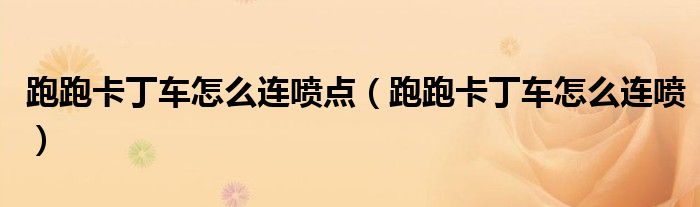 跑跑卡丁车怎么连喷点(跑跑卡丁车怎么连喷)