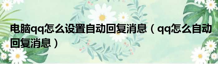 电脑qq怎么设置自动回复消息(qq怎么自动回复消息)
