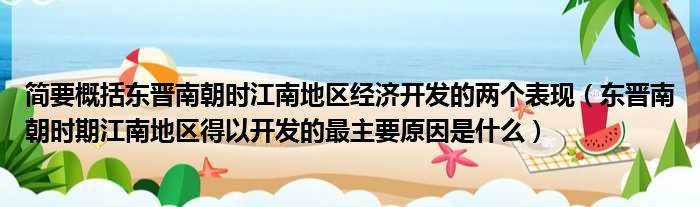 简要概括东晋南朝时江南地区经济开发的两个表现(东晋南朝时期江南地区得以开发的最主要原因是什么)