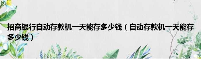 招商银行自动存款机一天能存多少钱(自动存款机一天能存多少钱)
