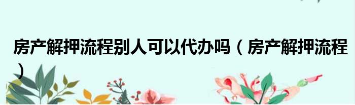 大家好,小东方来为大家解答以上的问题。房产解押流程别人可以代办吗,房产解押流程这个很多人还不知道,现在让我们一起来看看吧!