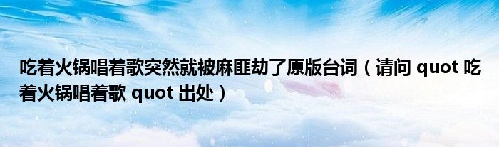 大家好,小东方来为大家解答以上的问题。吃着火锅唱着歌突然就被麻匪劫了原版台词,请问 quot 吃着火锅唱着歌 quot 出处这个很多人还不知道,现在让我们一起来看看吧!