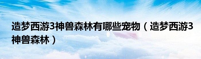 造梦西游3神兽森林有哪些宠物(造梦西游3神兽森林)