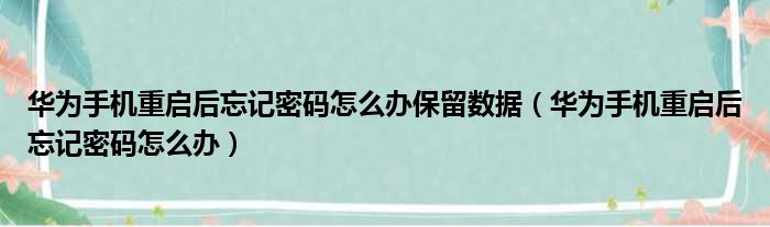 华为手机重启后忘记密码怎么办保留数据(华为手机重启后忘记密码怎么办)