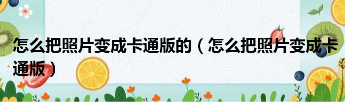 怎么把照片变成卡通版的(怎么把照片变成卡通版)