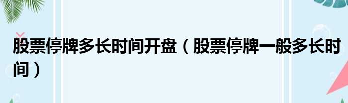 股票停牌多长时间开盘(股票停牌一般多长时间)