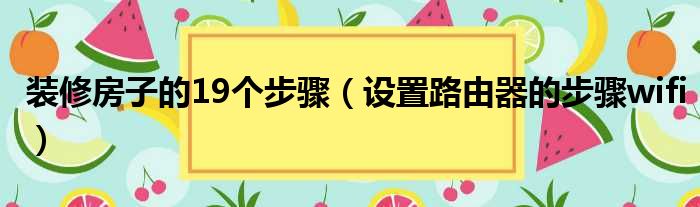装修房子的19个步骤(设置路由器的步骤wifi)