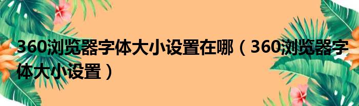 360浏览器字体大小设置在哪(360浏览器字体大小设置)