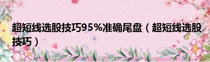 超短线选股技巧95%准确尾盘(超短线选股技巧)