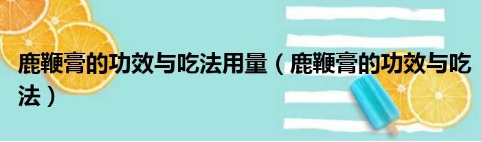鹿鞭膏的功效与吃法用量(鹿鞭膏的功效与吃法)
