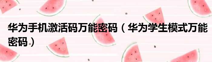 大家好,小活来为大家解答以上问题。华为手机激活码万能密码,华为学生模式万能密码很多人还不知道,现在让我们一起来看看吧!