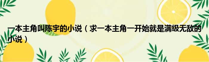 一本主角叫陈宇的小说(求一本主角一开始就是满级无敌的小说)