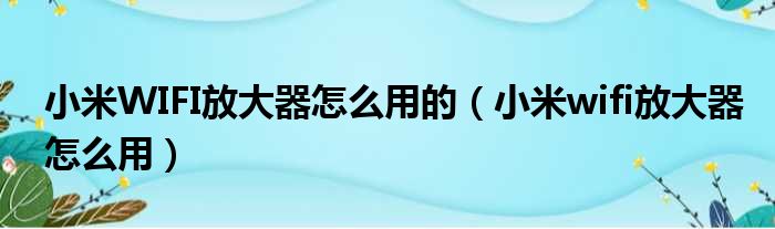 小米WIFI放大器怎么用的(小米wifi放大器怎么用)
