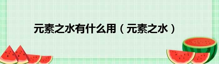 元素之水有什么用(元素之水)