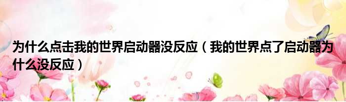 为什么点击我的世界启动器没反应(我的世界点了启动器为什么没反应)