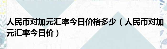 人民币对加元汇率今日价格多少(人民币对加元汇率今日价)