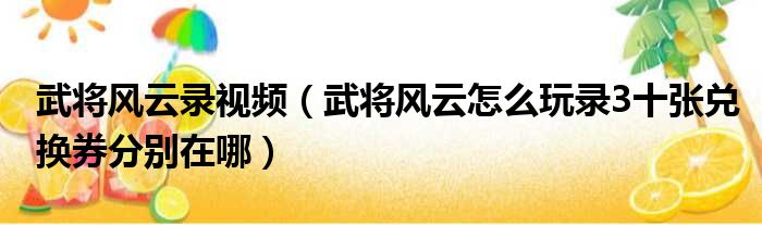 武将风云录视频(武将风云怎么玩录3十张兑换券分别在哪)