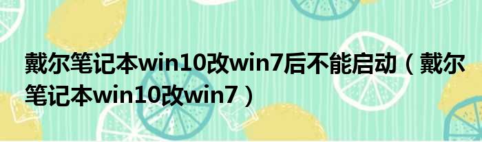 戴尔笔记本win10改win7后不能启动(戴尔笔记本win10改win7)