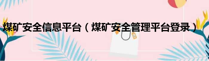煤矿安全信息平台(煤矿安全管理平台登录)