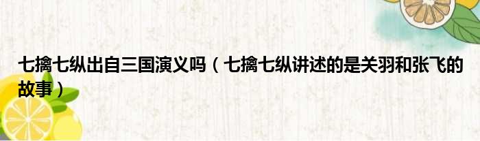 七擒七纵出自三国演义吗(七擒七纵讲述的是关羽和张飞的故事)