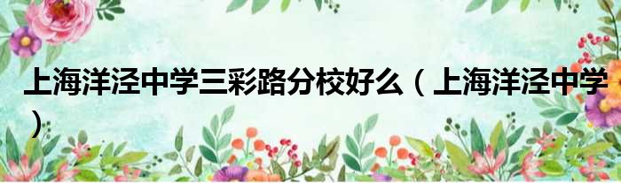 导读 大家好,小东方来为大家解答以上的问题。上海洋泾中学三彩路分校好么,上海洋泾中学这个很多人还不知道,现在让我们一起来看看吧!1、洋泾中