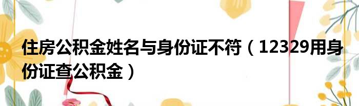 住房公积金姓名与身份证不符(12329用身份证查公积金)